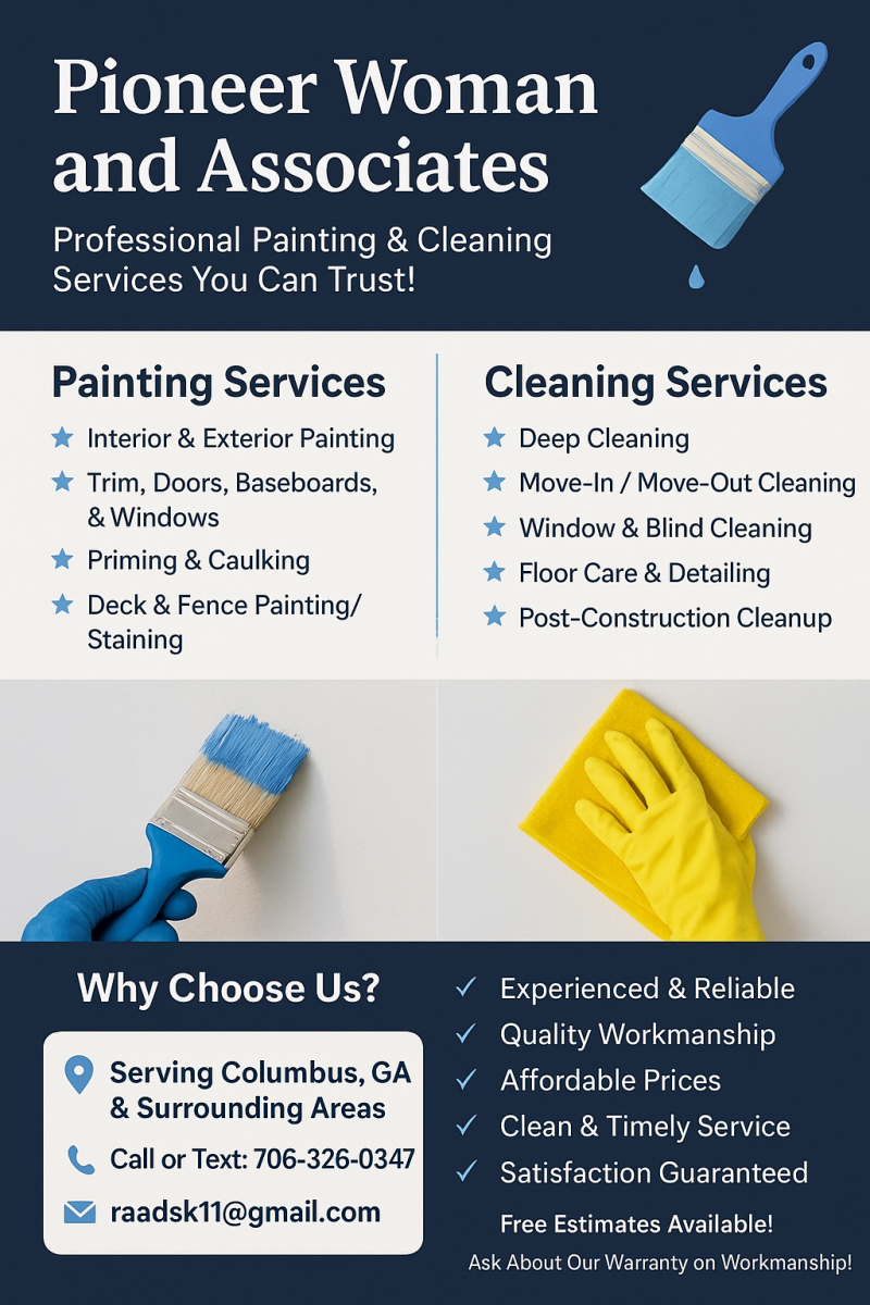Pioneer Woman and Associates LLC is your trusted partner for top-quality housekeeping & home repair services in Columbus, Georgia. With the Most FAVE ratings on the Nextdoor app for 2024 & 2025, we're committed to providing exceptional cleaning, repairs, painting and customer satisfaction. Let us make your home look and function wonderfully.